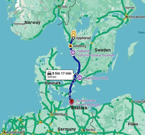 residents has become, at best, rather surface. We were happy to be included again this year to an 'annual village bus trip' to Germany, organized by some good friends. Four days (three hotel nights) in Rostock (on the Baltic) together with 40 or so folks who here at home live near us — but whom we otherwise rarely get the chance to share friendship. Our hope was that, as on previous trips, we could return home with a few little pearls of 'life value' extracted from different social exchanges these days. |